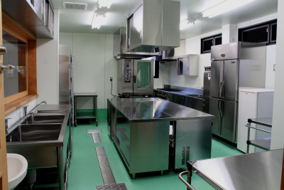 給食室 あったかい給食と 手作りおやつを提供しています |
